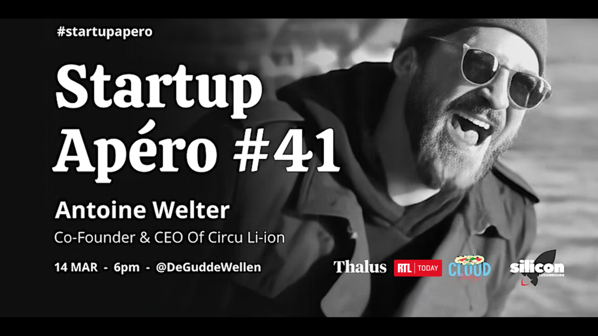 Tune in for another exciting instalment of the Startup Apéro event series, featuring a chat with Antoine Welter, Co-founder of Circu Li-ion, streamed live from 6.30pm on Tuesday 14 March.