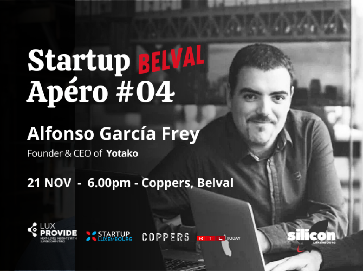 Startup Apéro #04 Belval Edition will feature a conversation with Alfonso Garcia Frey, Founder & CEO of Yotako, taking place at the Coppers, situated on 1 Av. du Swing, in Belval (Esch-sur-Alzette).
