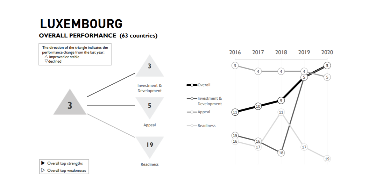 Luxembourg, in third, has, according to the report, seen a consistent improvement over the past five years, gaining an impressive eight places and rising from 11th to third.