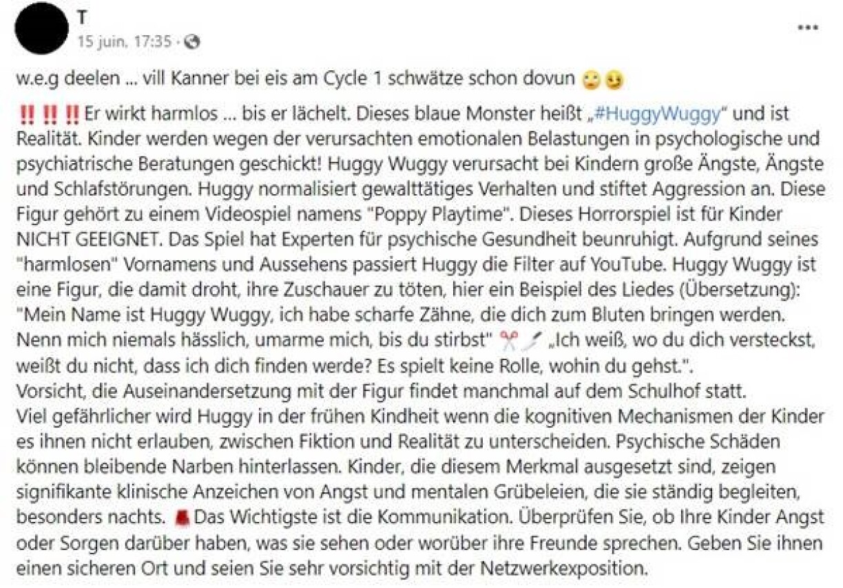 The first articles regarding Huggy Wuggy appeared in the British and American press in April. However, in recent days, chains of messages have been shared and commented on by many Luxembourgish social media users.