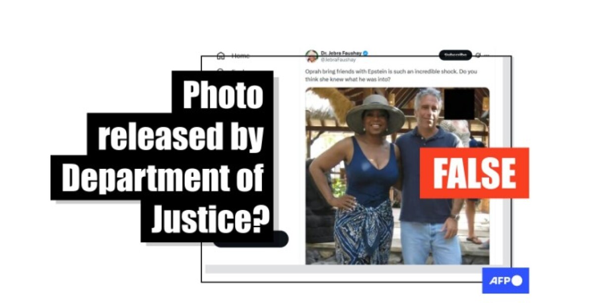 As the US Justice Department began releasing highly anticipated files related to investigations into Jeffrey Epstein, social media users spread a picture they claimed shows the late convicted sex offender with Oprah Winfrey. But the image is an alteration of a photo in which British entrepreneur Richard Branson poses with Epstein; AFP found no mention of the talk show titan among the documents released as of December 24, 2025.