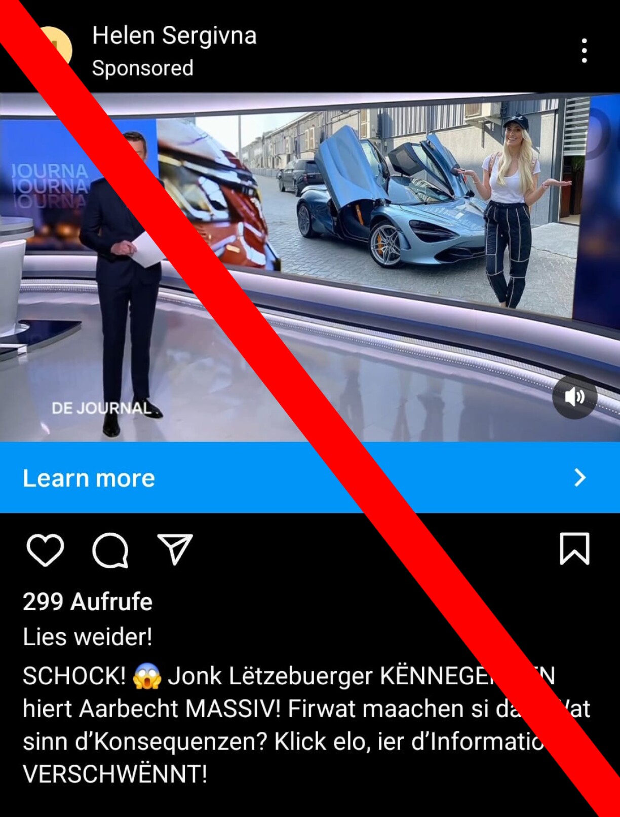Recently, a new campaign of this nature surfaced on Instagram. A sponsored post from an account named “Helen Sergivna”, created in January 2025, featured a doctored video using the likeness of RTL Télé news anchor Sascha Georges. The account has since been removed from Instagram after the ad was posted last weekend.
