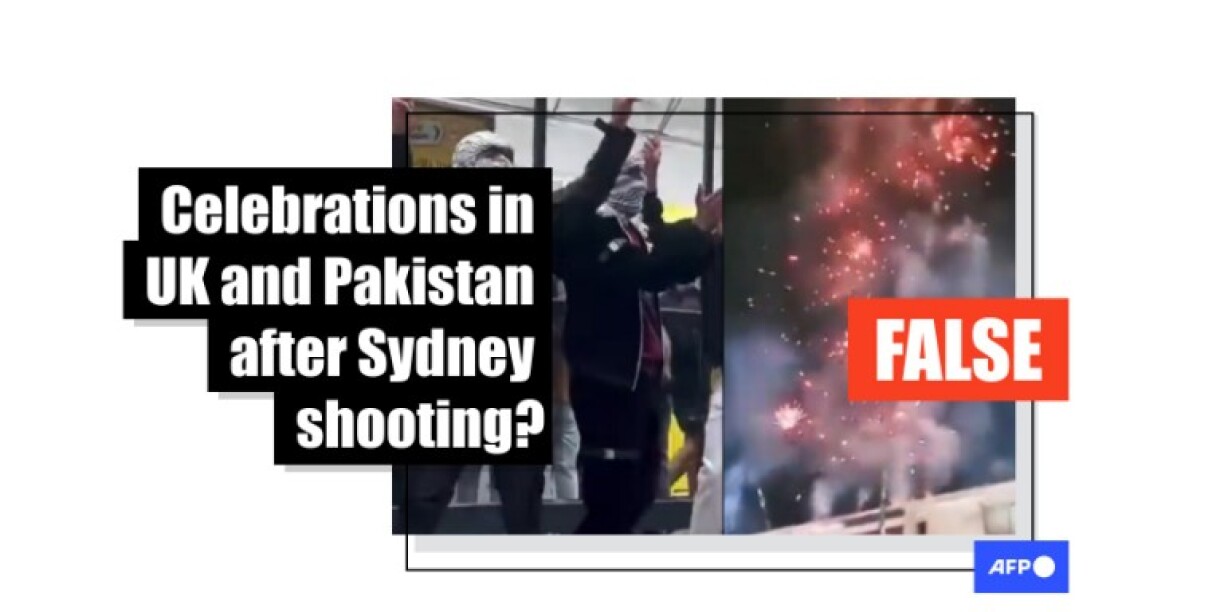 After gunmen fired on a crowd celebrating the Jewish festival of Hanukkah at Sydney’s Bondi Beach on December 14, 2025, videos spread in social media posts falsely claiming they showed people in the United Kingdom and Pakistan celebrating the deadly attack. The videos predate the shooting and depict a pro-Palestinian demonstration in Manchester in June and a fireworks display in Karachi organised after Hamas’s attack on Israel.