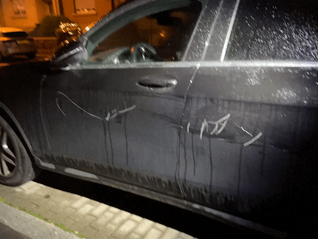 Experts said the scratches couldn’t have been older than two weeks, as was claimed on social media, because the paintwork was too clean and white, which did not tally with recent weather conditions. If the scratches had been made prior to the protests, they would have been discoloured by rain or dirt. The metadata from the image backs up the conclusion that it was not faked.