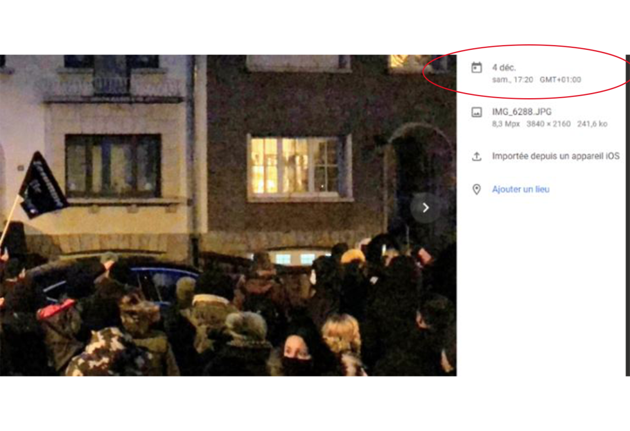 The image metadata reveals the photo was indeed taken at 5.34pm on 4 December 2021, at the site where the protests took place outside the home shared by Bettel and his husband Gauthier Destenay.