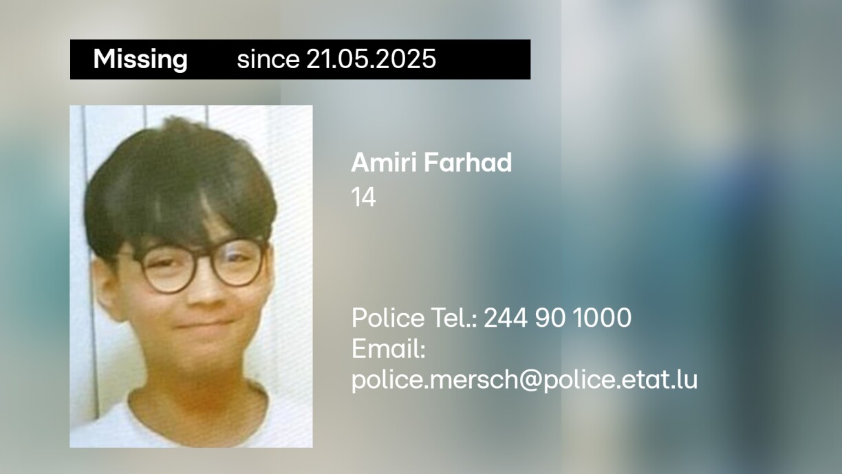 Anyone with information about the missing person is asked to contact the Mersch police station at 244 90 1000 or via email at police.mersch@police.etat.lu.