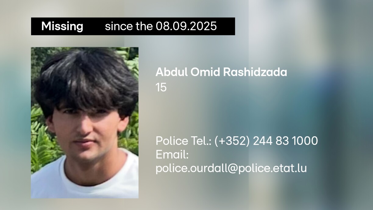 Anyone with information relating to his whereabouts should contact Ourdall police station on (+352) 244 83 1000 or via email at police.ourdall@police.etat.lu.