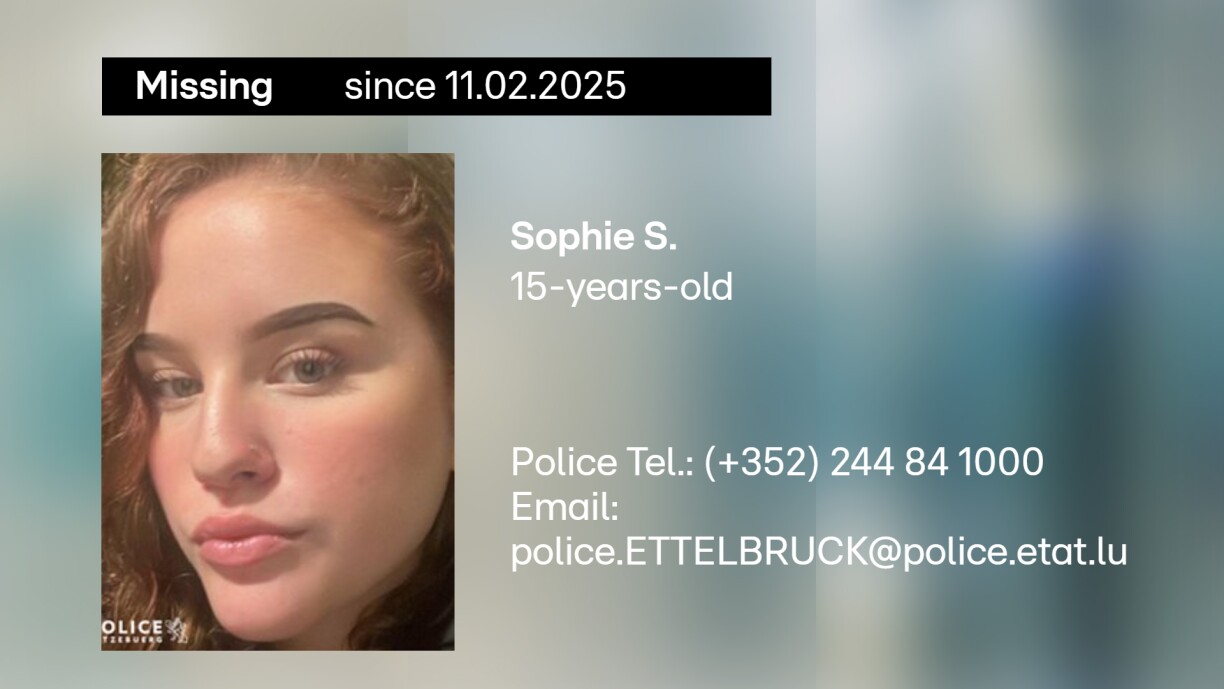 Authorities say the teenager was last seen at 10am that day. She is described as having a slim build, standing between 1.70–1.80m tall, with dyed, long, curly hair and grey-green eyes. She speaks both Luxembourgish and French.