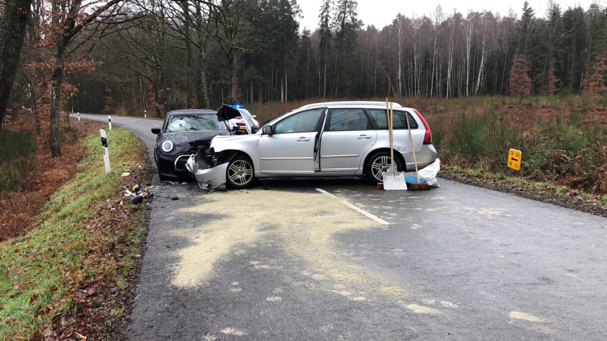 Two people were taken to hospital following the full-frontal collision, which took place at around 1.15pm on Friday. The circumstances surrounding the crash are unknown.