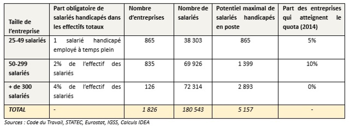 Disabled employees only represent 10% of job seekers registered with the National Employment Agency (ADEM). In 2016, nearly 9,200 disabled people entered the job market. Of these people, only 3,400 received employment, of which 60% are employed in sheltered workshops or the public sector. Mellouet pointed out that the public sector equally struggles with quotas.