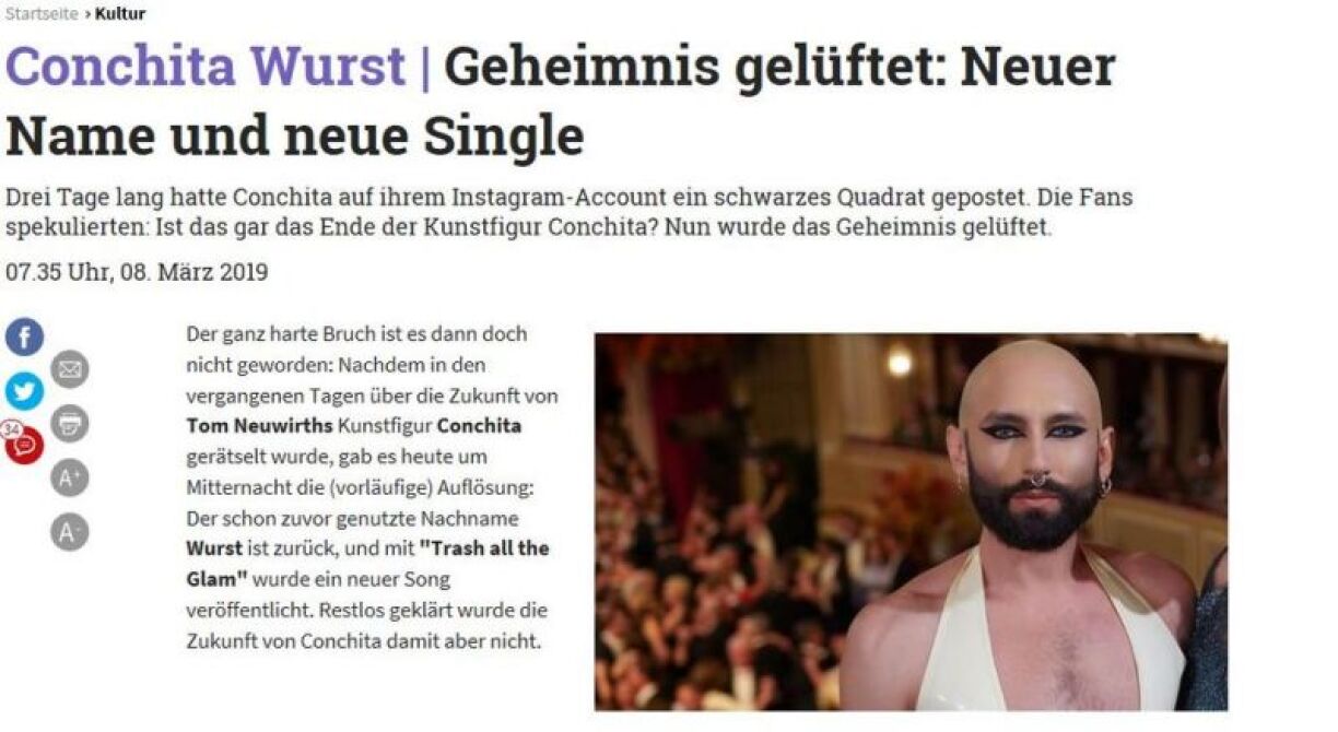 Conchita Wurst, now known as only Wurst, has a new look and a new single to promote.