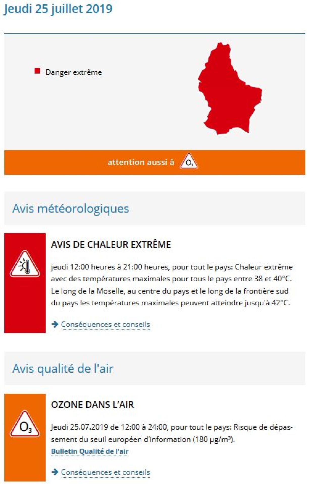 The red alert for extreme heat will cover Luxembourg from midday to 8pm. Residents should avoid going outside between 11am and 9pm and ensure they drink enough water.