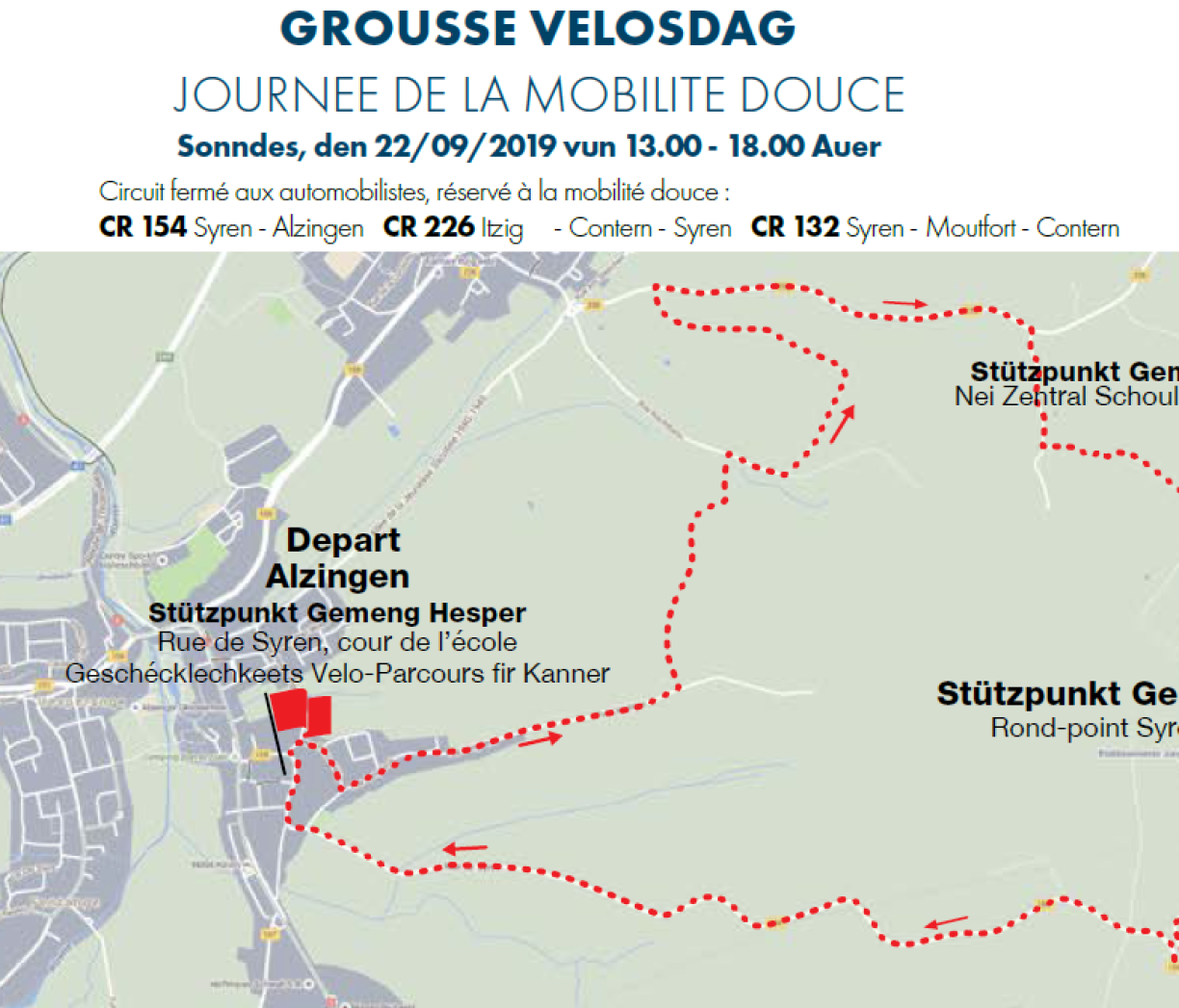 The municipality of Hesperange has organised a cycling day and has closed the CR154 between Syren and Alzingen, the CR226 from Itzig through to Contern and Syren, and the CR132 connecting Syren, Moutfort, and Contern to traffic. Only ‘soft mobility’ options are permitted.
