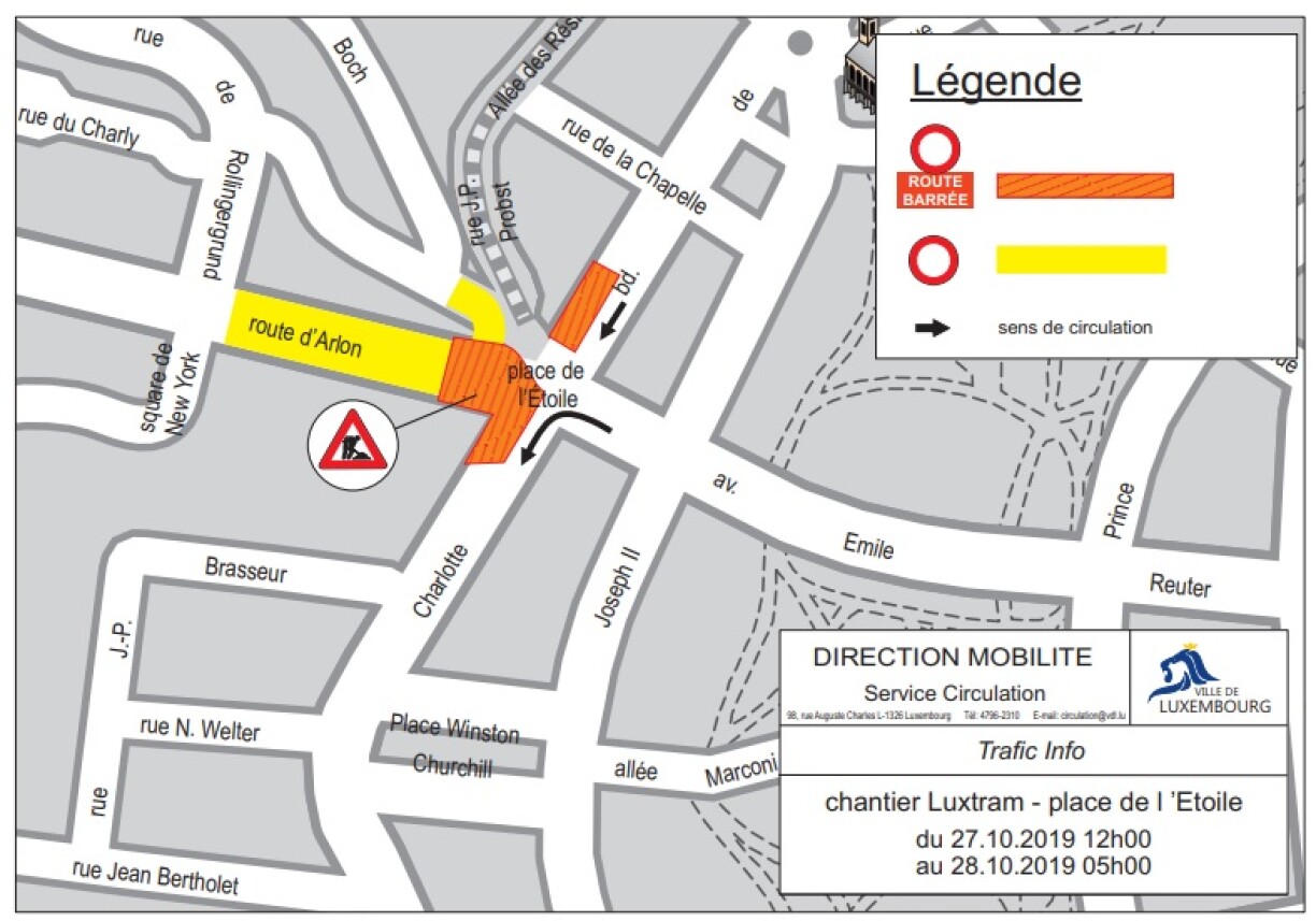 Luxtram will be resurfacing roads around Place de L’Etoile, parts of the Route D’Arlon (stretch between the Place de l’Etoile and square de New York) and the Boulevard de la Foire (section located between Place de l’Etoile and Rue de la Chapelle).