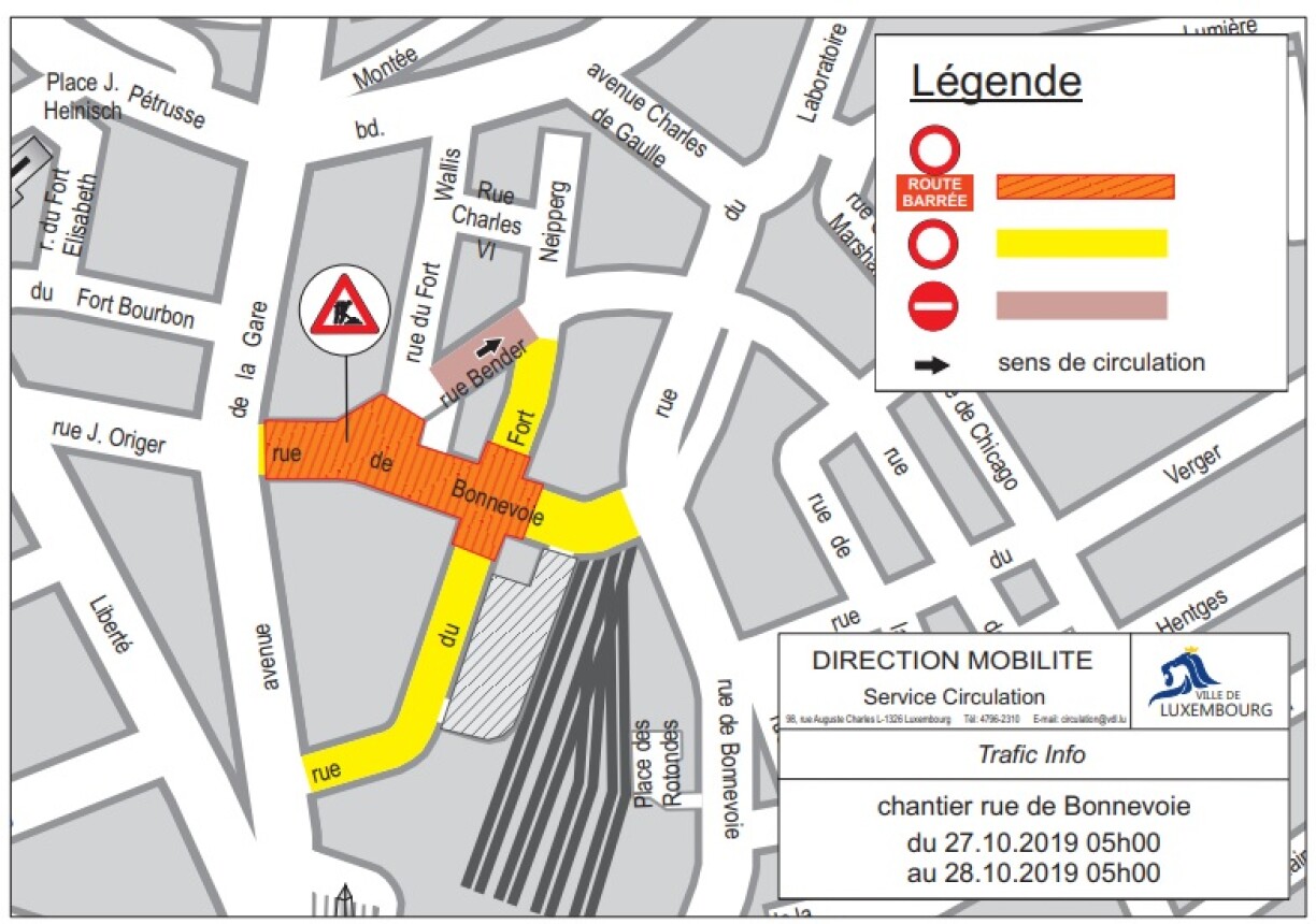 The Roads and the Traffic Departments will be resurfacing Rue de Bonnevoie on the section between Avenue de la Gare and Rue Fort Neipperg (including the intersection).