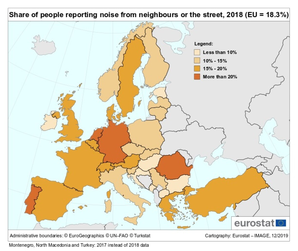 This rate of 19.3% not only places Luxembourg above the European average (18.3%), but also in the top 10 of EU countries in terms of noise complaints.