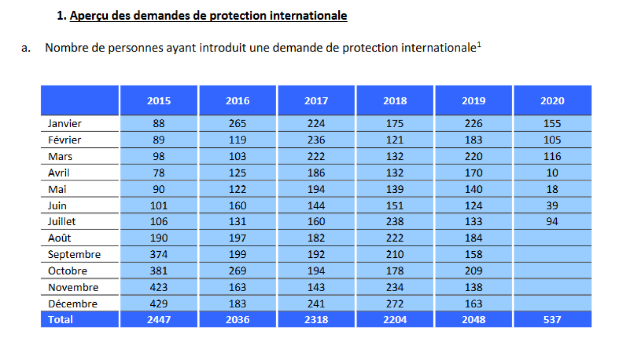 The pandemic has had a marked effect on the number of asylum seekers. Up until 31 July 2020, just 537 requests for international protection had been made in Luxembourg - the same period in 2019 saw twice as many people seeking asylum.