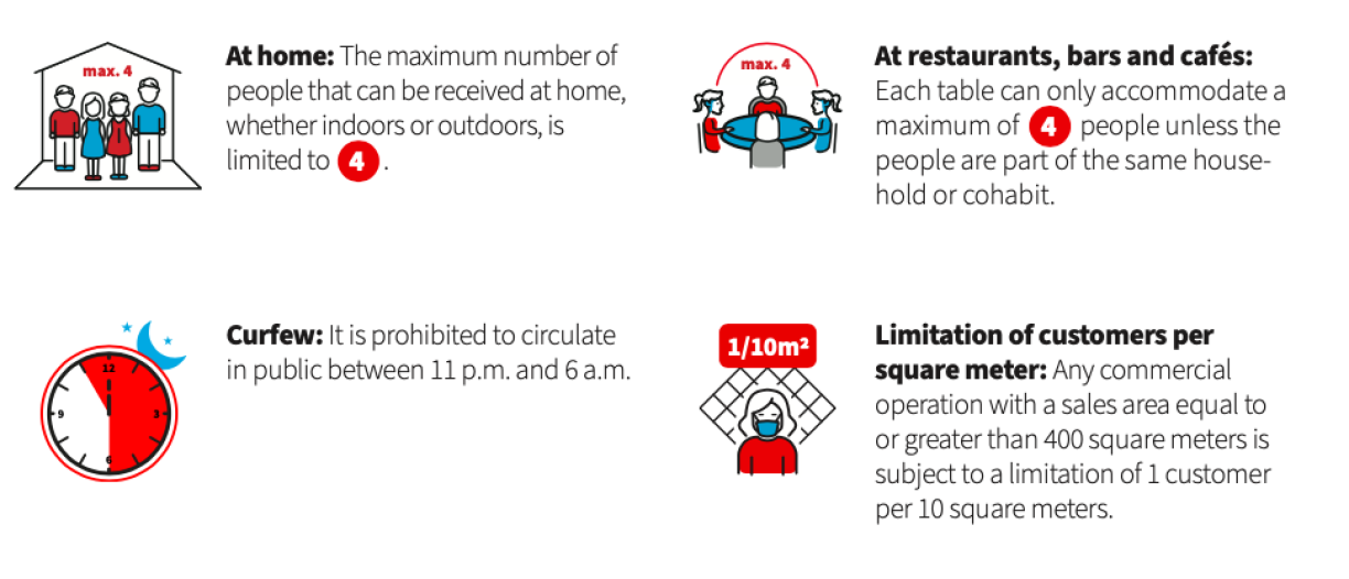 All of these measures, except the curfew, will remain in place until 31 December 2020.