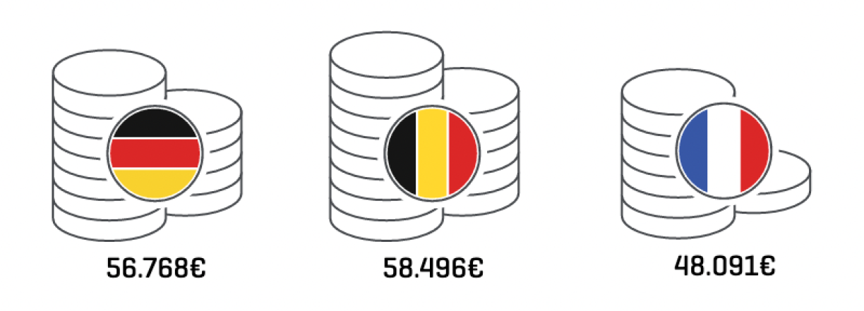 On average, French cross-border employees earn €10,400 less than those from Belgium, which also puts them €8,700 behind the annual average of German workers.