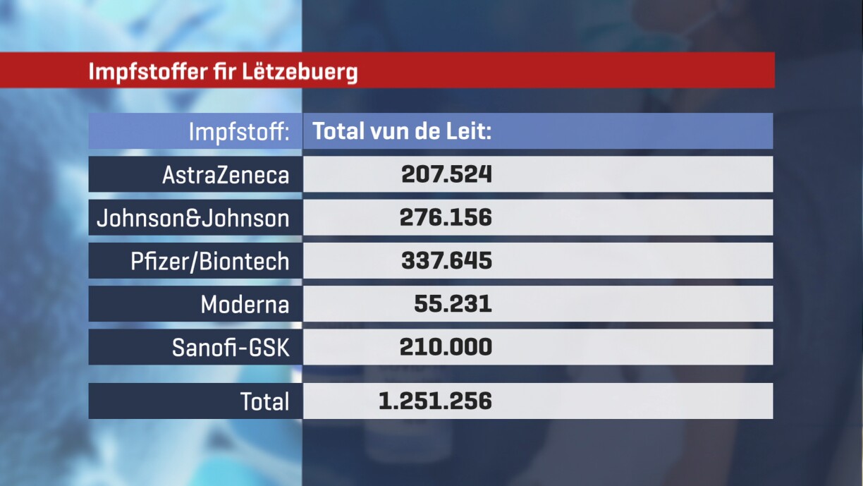 All in all, Luxembourg has signed agreements with the European Commission to purchase a sufficient number of vaccines for at least 1,2 million people in the Grand Duchy, totalling in 2,226,355 vaccines. The Johnson & Johnson vaccine only requires one jab.