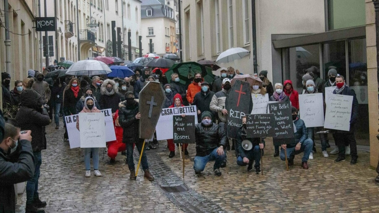 The organisers of the protest communicated on Saturday evening that the expected crowd of 150 people had been exceeded by 200 demonstrators. Members of the Horesca sector thus walked from Place Guillaume II to the Chamber of Deputies, demanding that both restaurants and bars are allowed to open their businesses once more.