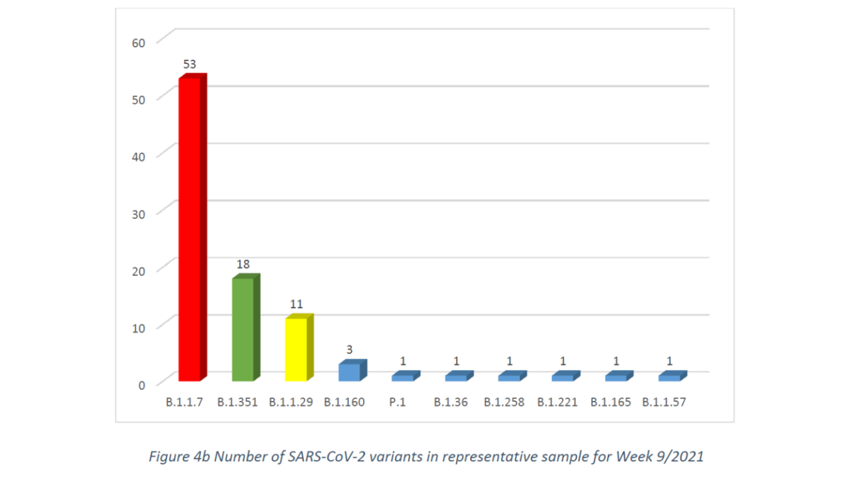 During the ninth calendar week from 1 to 7 March, the LNS analysed a total of 475 samples. The UK variant of the coronavirus accounted for 62% of all cases, while the South African variant could be detected in 18.5% of the samples.