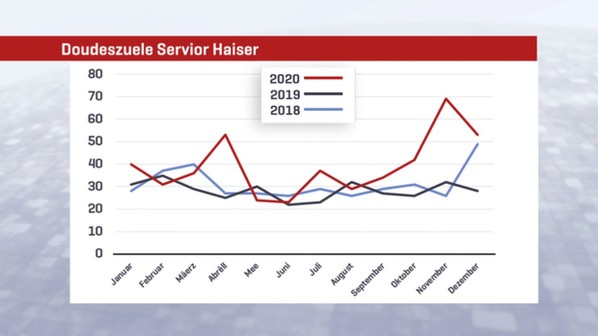 According to virologist Professor Claude Muller of the Luxembourg Institute of Health (LIH), the vaccines will bring "increased freedom" to retirement homes and could even lead to there being "virtually no restrictions" anymore. If 90% or more are vaccinated inside a facility, including staff, it is possible to return to a life without restrictions, Professor Muller added. By the end of March, nearly 1,900 of the 6,400 residents in the Grand Duchy's retirement and care homes had tested positive for the coronavirus. In one facility there were no cases, while others reported that more than 70% of its residents were infected with Covid-19. According to Professor Muller, analyses are needed. For example, it is important to know how and when the cases occurred, whether there were individual infections without any further contamination, or whether one infection led to a cluster. In this way, conclusions can be drawn about the effectiveness of the measures taken.The number of deaths in homes for the elderly in Luxembourg shows that in 2020, there were many more deaths during the two waves of the pandemic than in the two previous years.