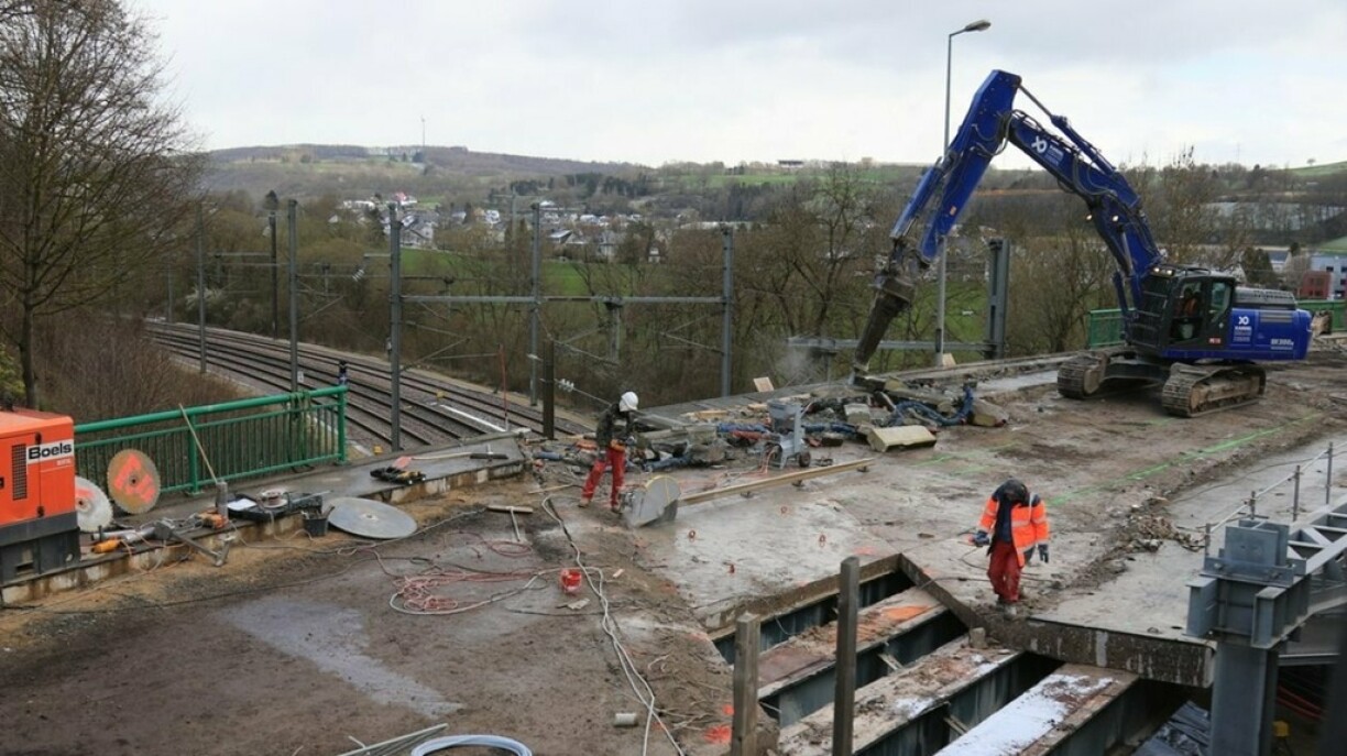 While the new juxtaposed bridge, which connects Ettelbruck and Diekirch, was opened for traffic a few days ago, the dismantling process of the old construction began on Saturday.
