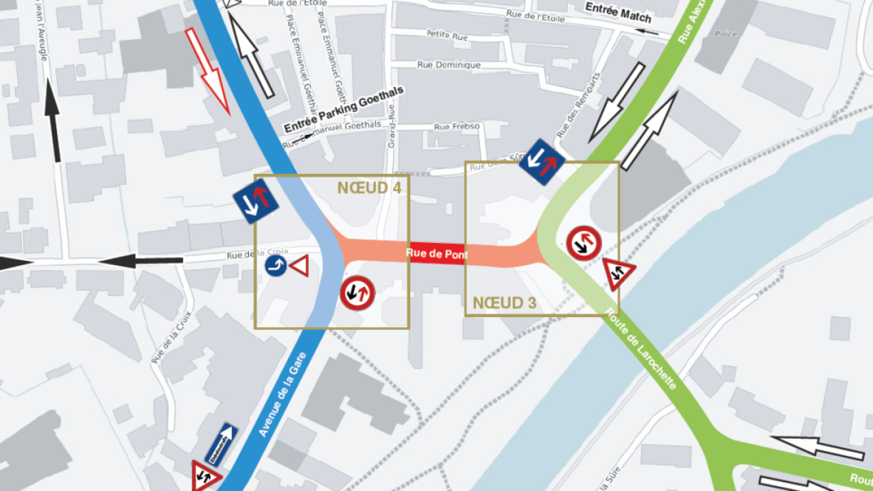 The roadworks will result in the full closure of rue du Pont for the duration, with traffic deviated via rue de Stavelot, rue Esplanade and rue Alexis Heck.