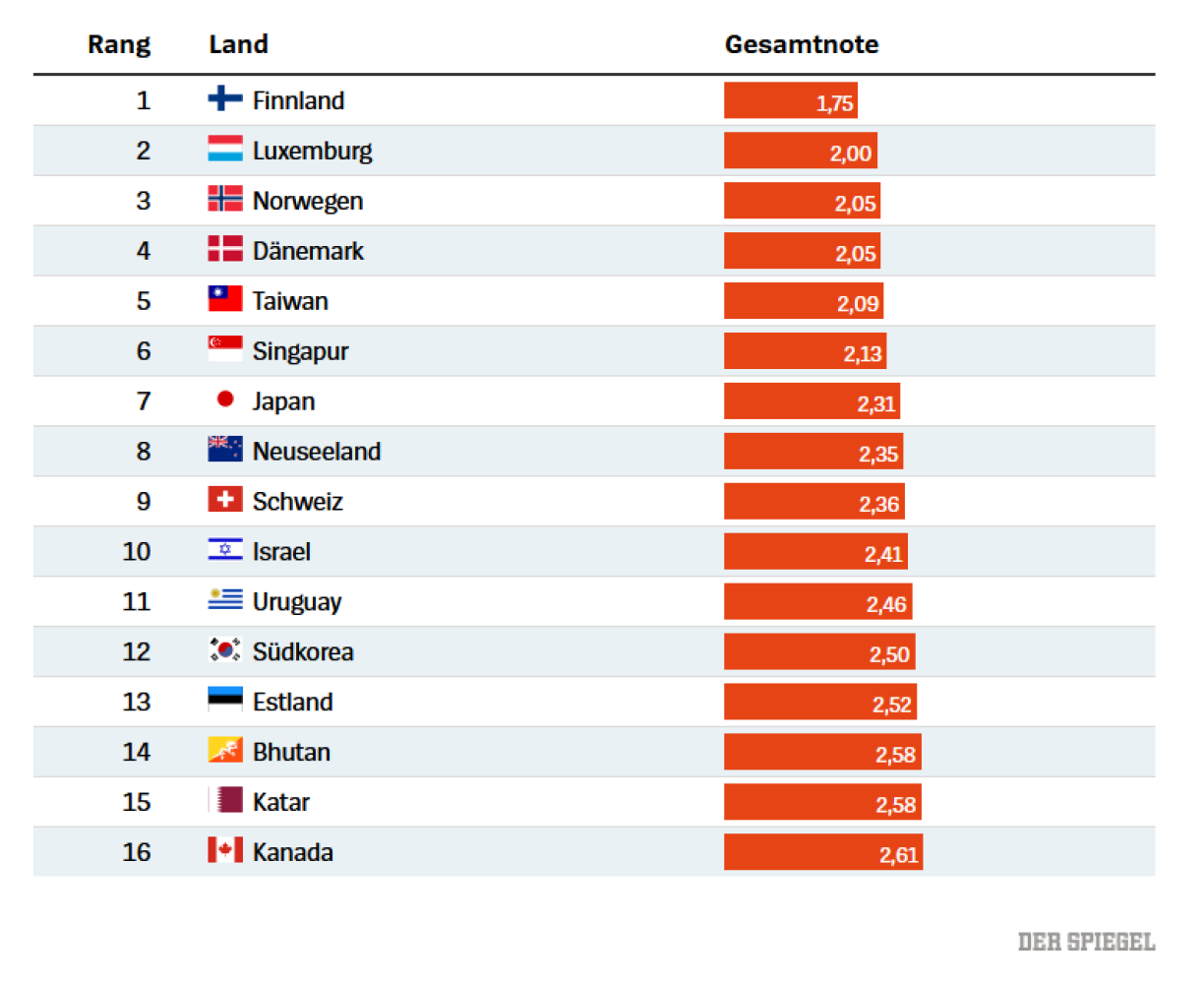 Finland, Denmark, Estonia and Luxembourg are the only EU countries among the 16 countries that came through the crisis best. Apart from Estonia, they also occupy three of the top four places.