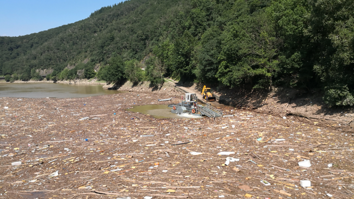 Clearing operations at the top of the dam started on Monday. The river has brought masses of waste from Belgium that now need to be removed step by step, including trees and caravans. Due to the consistent pressure from the Our, waste is being compressed into a compact mass. In some areas, this mass has a water-depth of one metre.