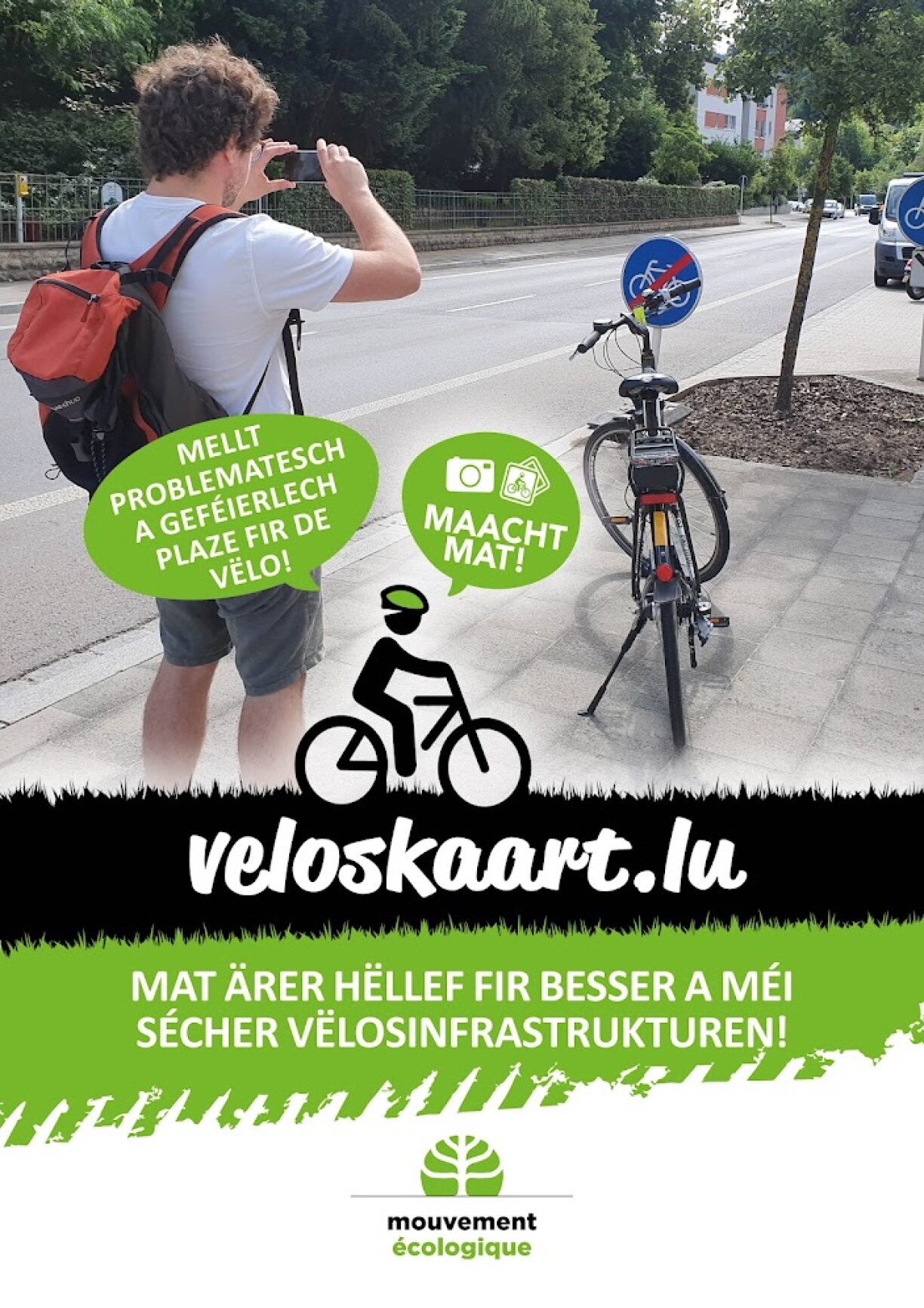 From 24 July until 31 October, anyone can use veloskaart.lu to report problematic and/or dangerous places for cyclists on an interactive map. It is also possible to upload photos or videos and suggest potential solutions to the issue.