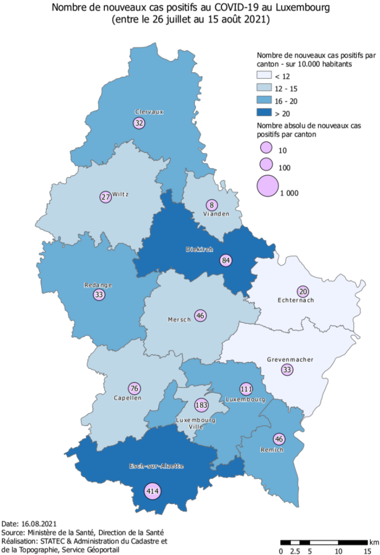 According to the figures provided by the Ministry of Health, between 26 July and 15 August, only nine new cases were recorded in the canton of Vianden, whereas in the canton of Esch-sur-Alzette, the figure was 414.