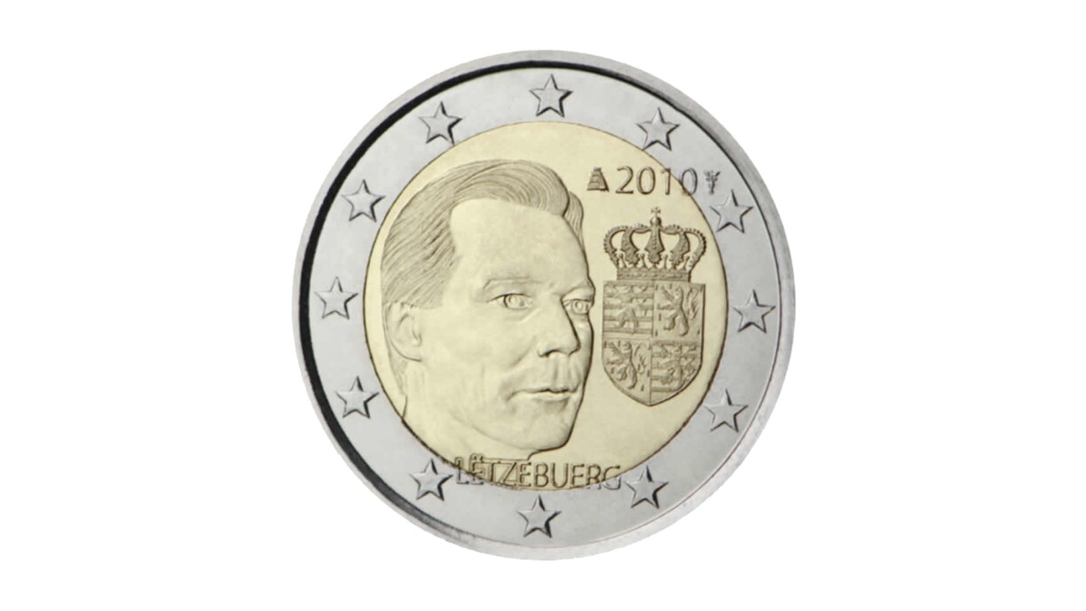Only 500,000 coins of this kind were made in 2010. The national side shows a unique portrait of Grand Duke Henri, as well as the coat of arms.