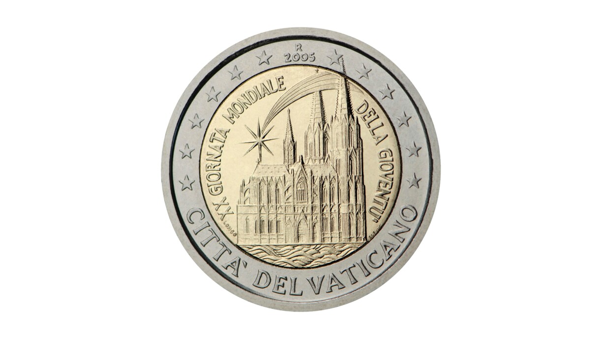 In second place is a coin from Vatican City, which shows the cathedral in Cologne.
