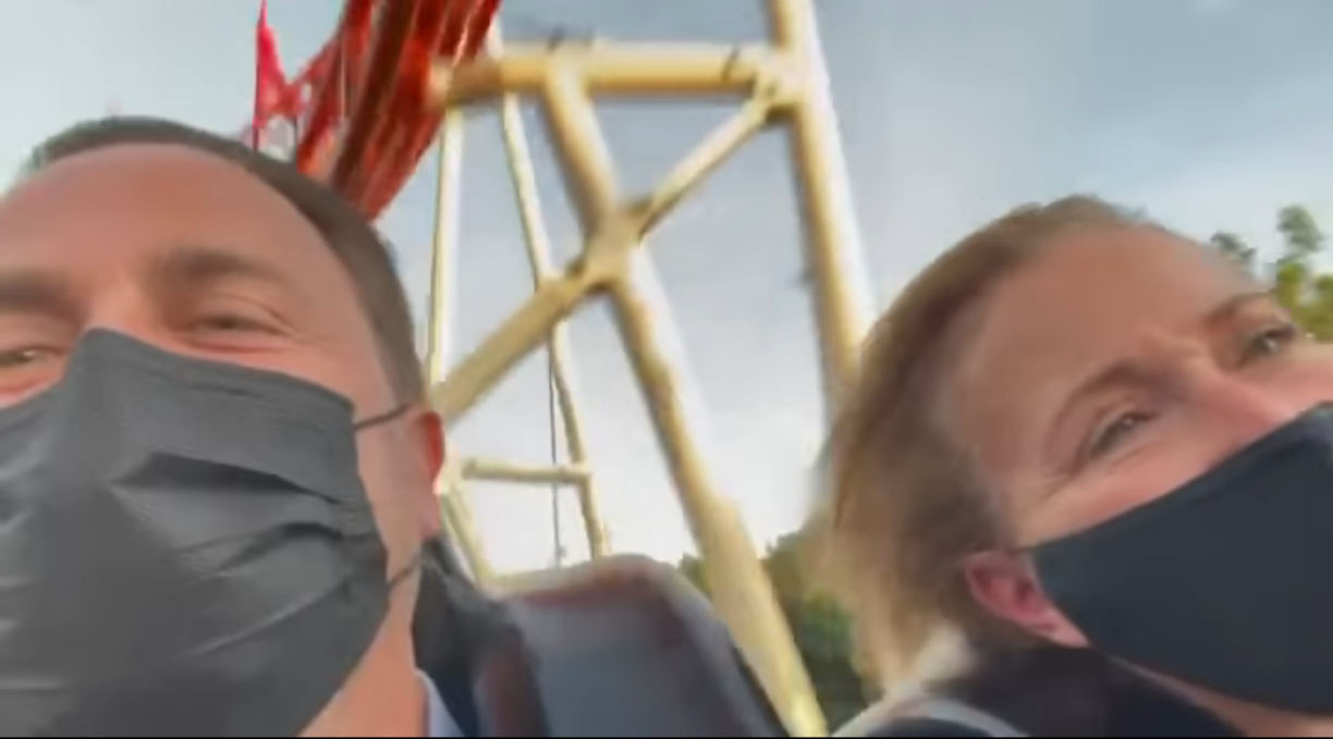 The pair look to be having enormous fun (Bettel more so than Lenert, it seems) on one of the high speed roller coasters at this year’s slimmed down Schueberfouer.