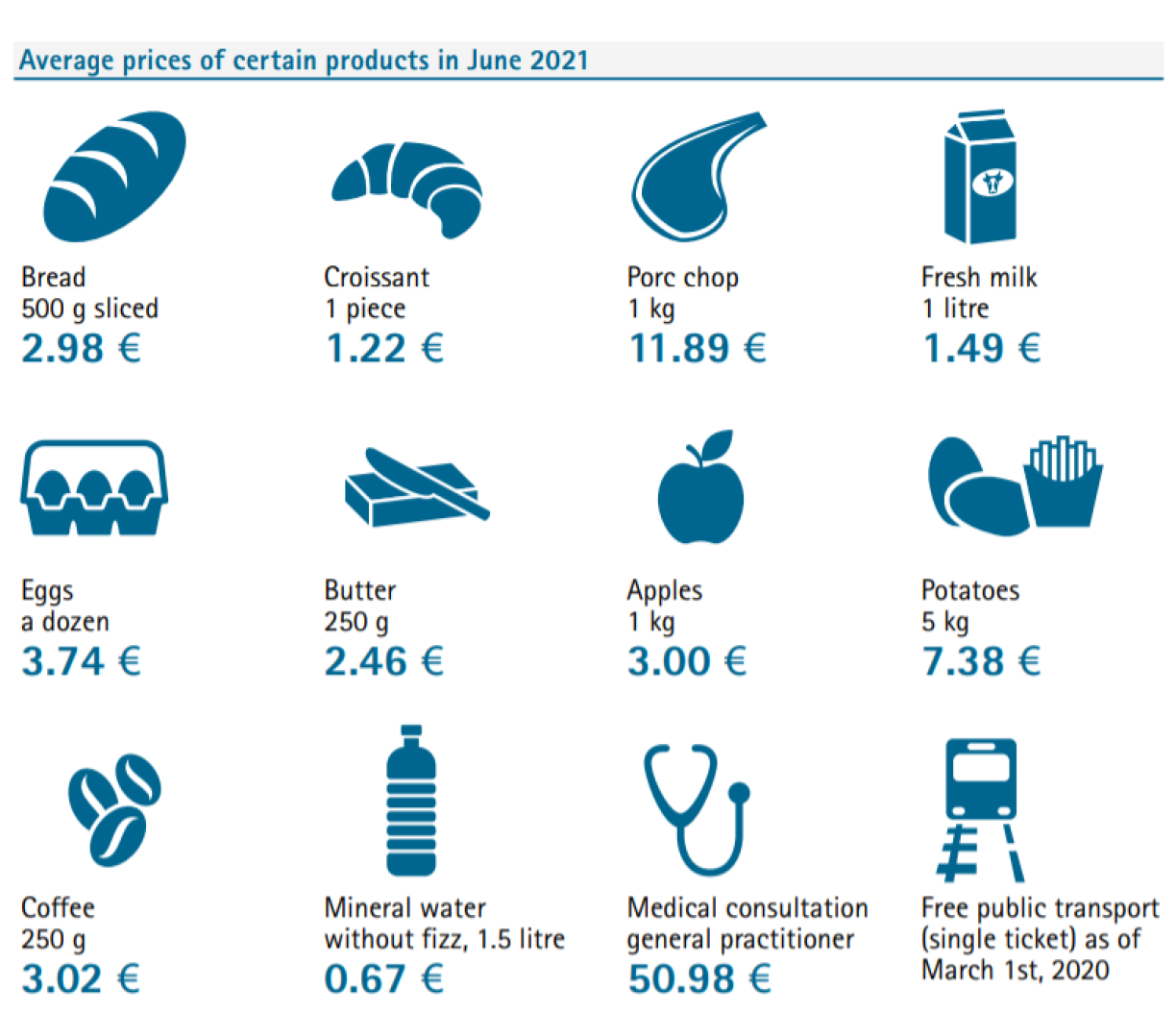 In June 2021, a loaf of bread cost around €2.98 on average, while a kilo of apples cost €3, and a litre of fresh milk €1.49.