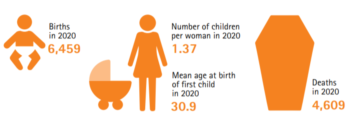 6,459 babies were born in Luxembourg in 2020. The average age for mothers birthing their first child was 30.9 years.
