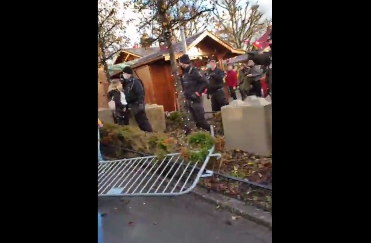 Tensions finally erupted at the Christmas market on Place de la Constitution, around the Gëlle Fra monument, at around 3.30pm, when several stands refused to serve hot drinks to some of the protesters. The latter proceeded to knock down several barriers in order to enter the site without showing their CovidCheck certificates.