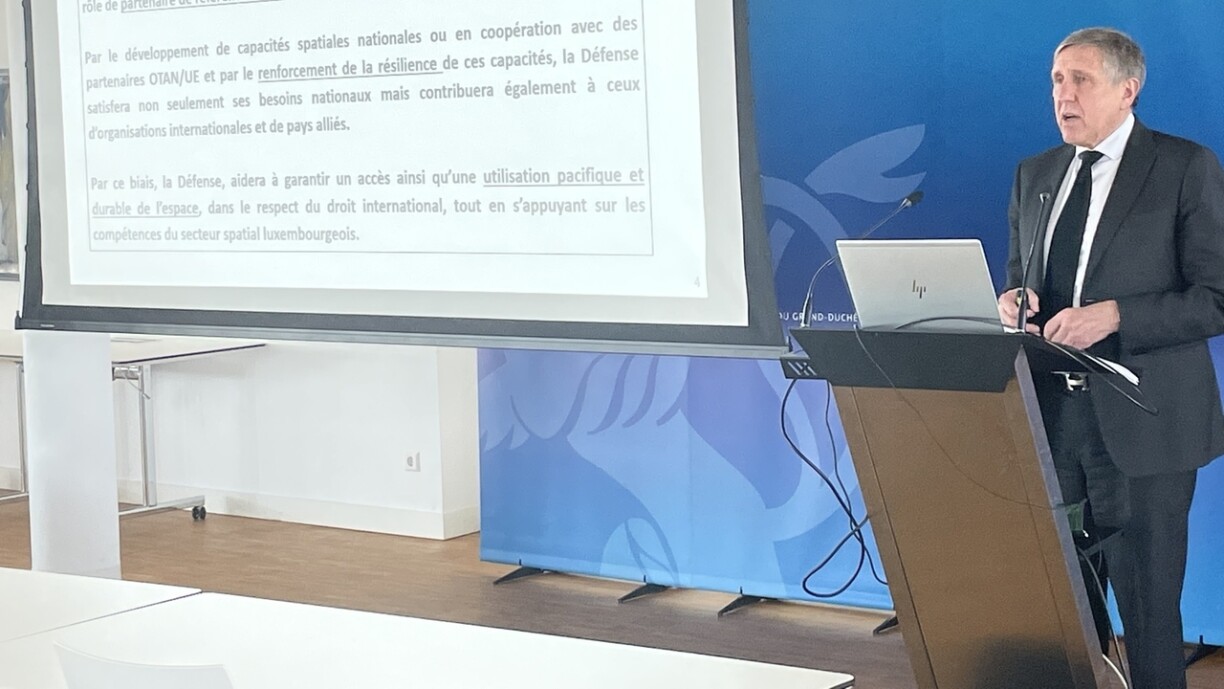 This represents a military domain where our small country can become an important player, explained Minister Bausch during the presentation. Due to the increasing dependance on functioning satellites, the strategy envisions to increase security in terms of cyber attacks, accidents provoked by space debris, and asteroid impacts.