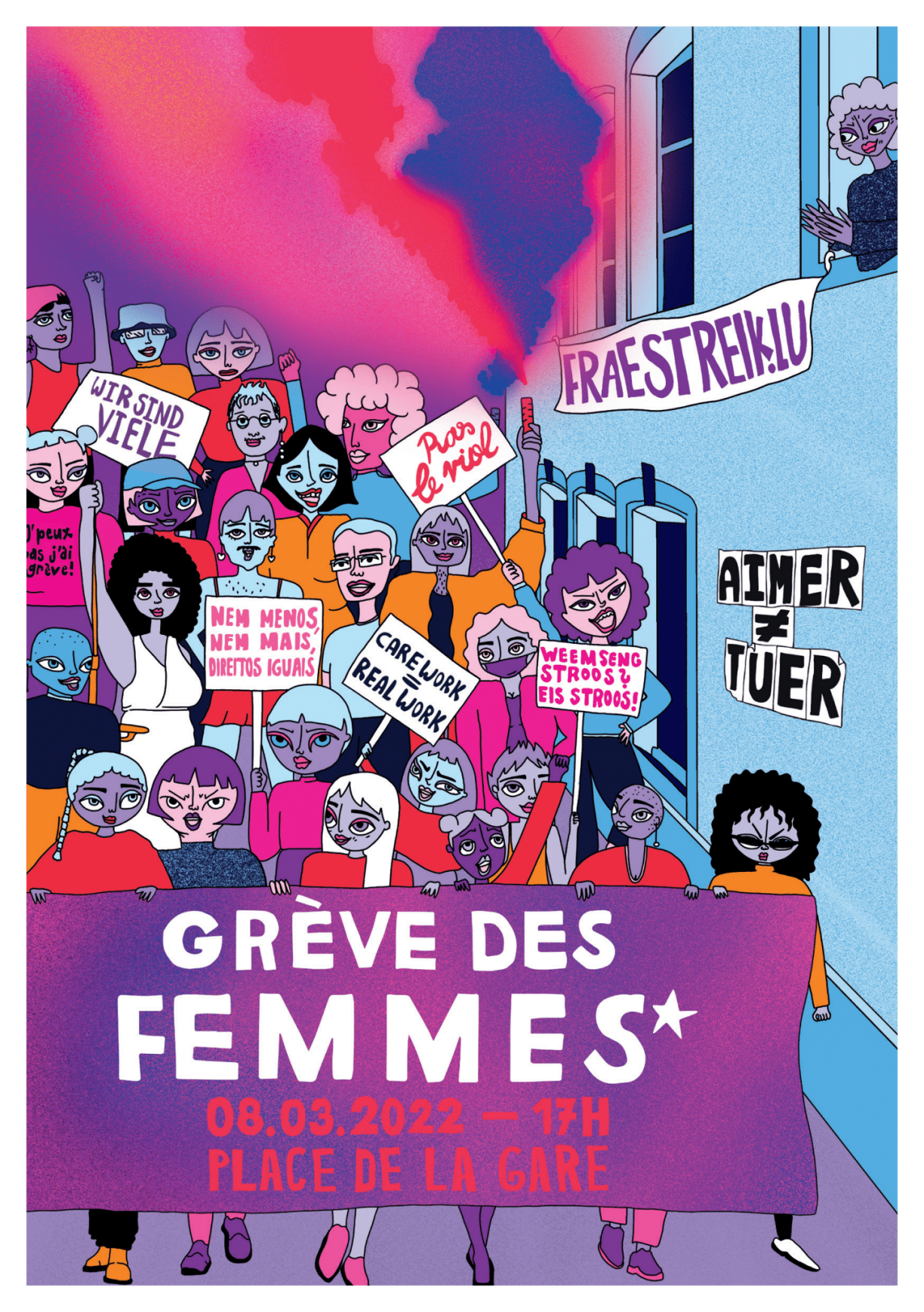 Despite the label of “women’s strike”, there were men showing their support, too. Equality is everybody’s business, argued a young demonstrator. The strike is meant as a symbol, which is why it took place after work hours. Participants walked from Gare Central to Place d’Armes.