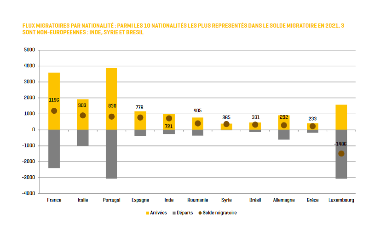 25,335 people moved to the Grand Duchy last year, the majority of whom were French nationals (12.8%), followed by Italian nationals (9.6%), and Portuguese nationals (8.9%).