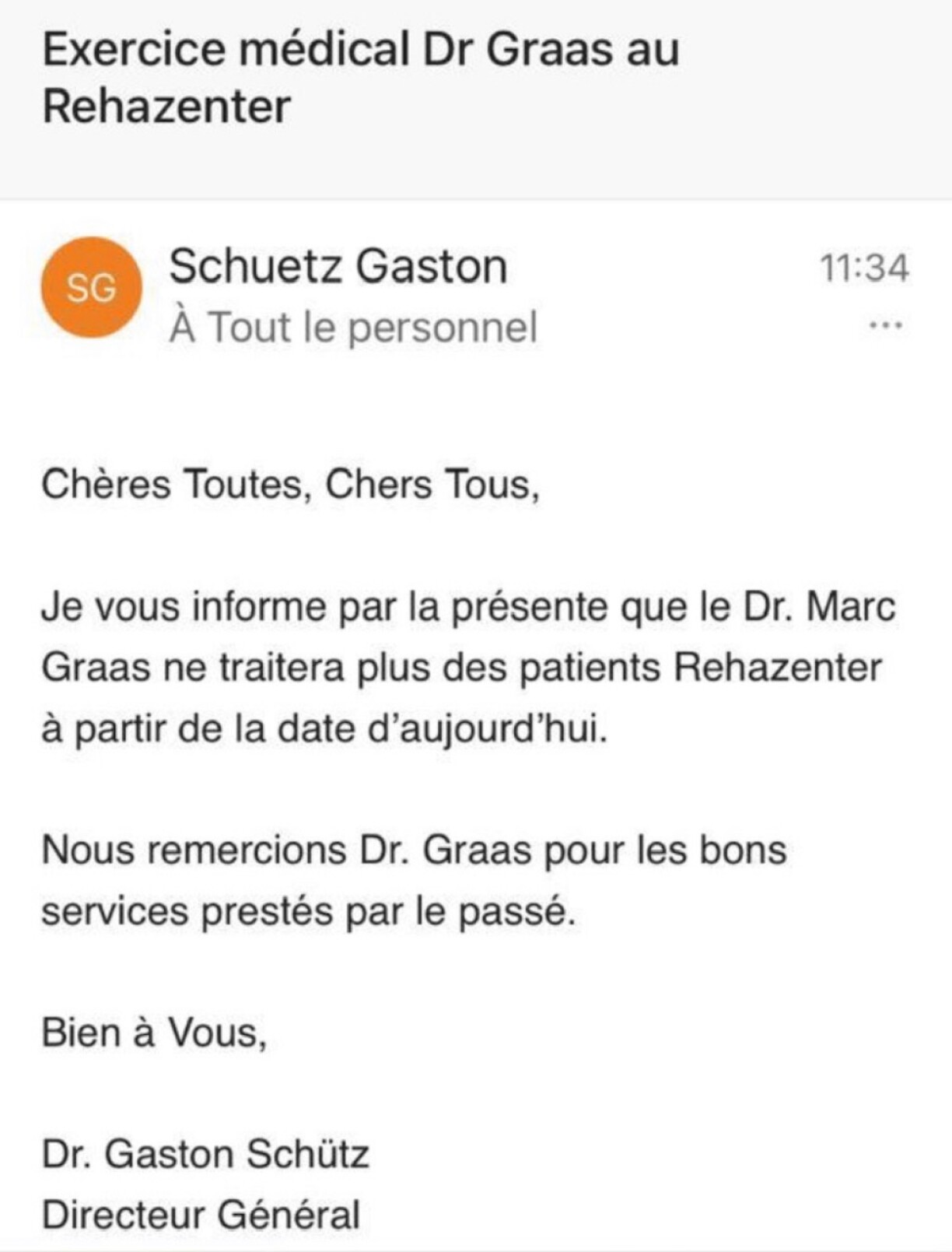 The psychiatrist stresses that this decision, which was taken “without notice and without consideration for my patients,” cannot and must not be accepted. Dr Graas argues that he is “needed” at the Rehabilitation Centre, which he still considers to be “a valuable gem” of an institution.