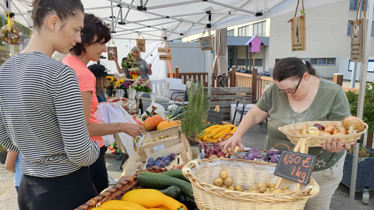 The home for the blind in Berschbach will continue organising a market next to the facility every Friday until 9 September. Although small profits are made, the focus of the market is to allow people with disabilities to work.
