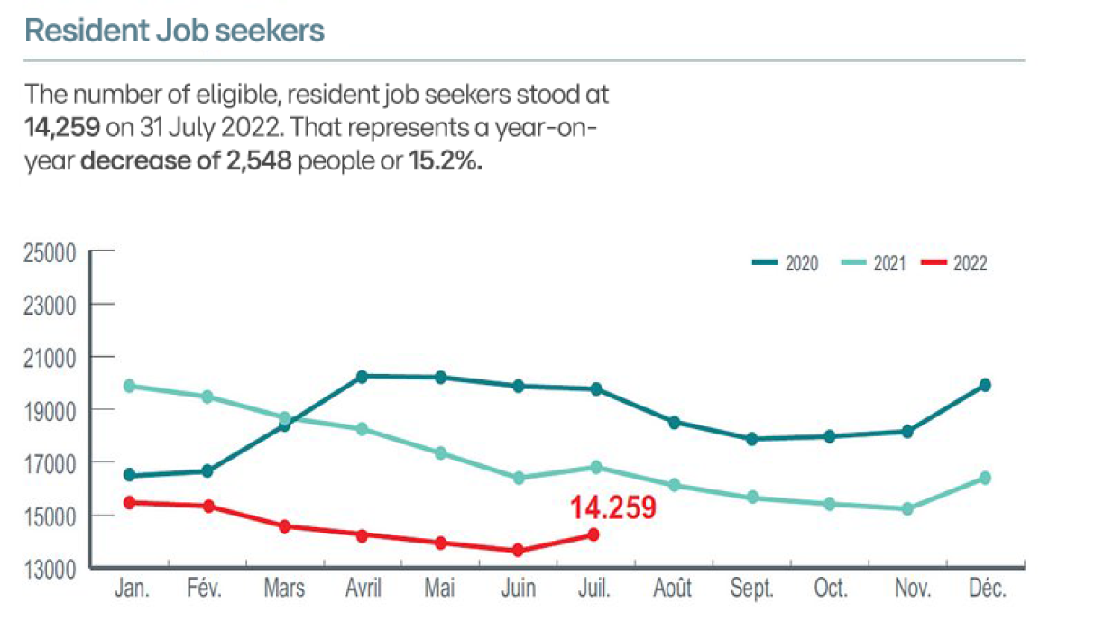 According to the latest report from the National Institute of Statistics and Economic Studies (STATEC), a total of 14,259 people were registered with the National Employment Agency (ADEM) last month. Compared to the same period last year, the number of job seekers declined by 2,548 people (15.2%).