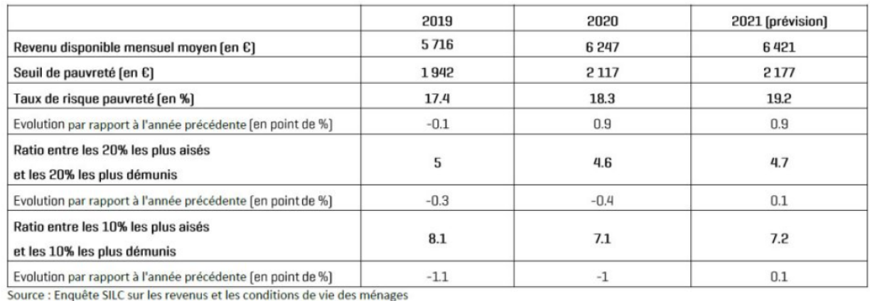 This upward trend in the poverty rate is all the more worrying because, according to STATEC estimates, it is expected to continue in 2021.