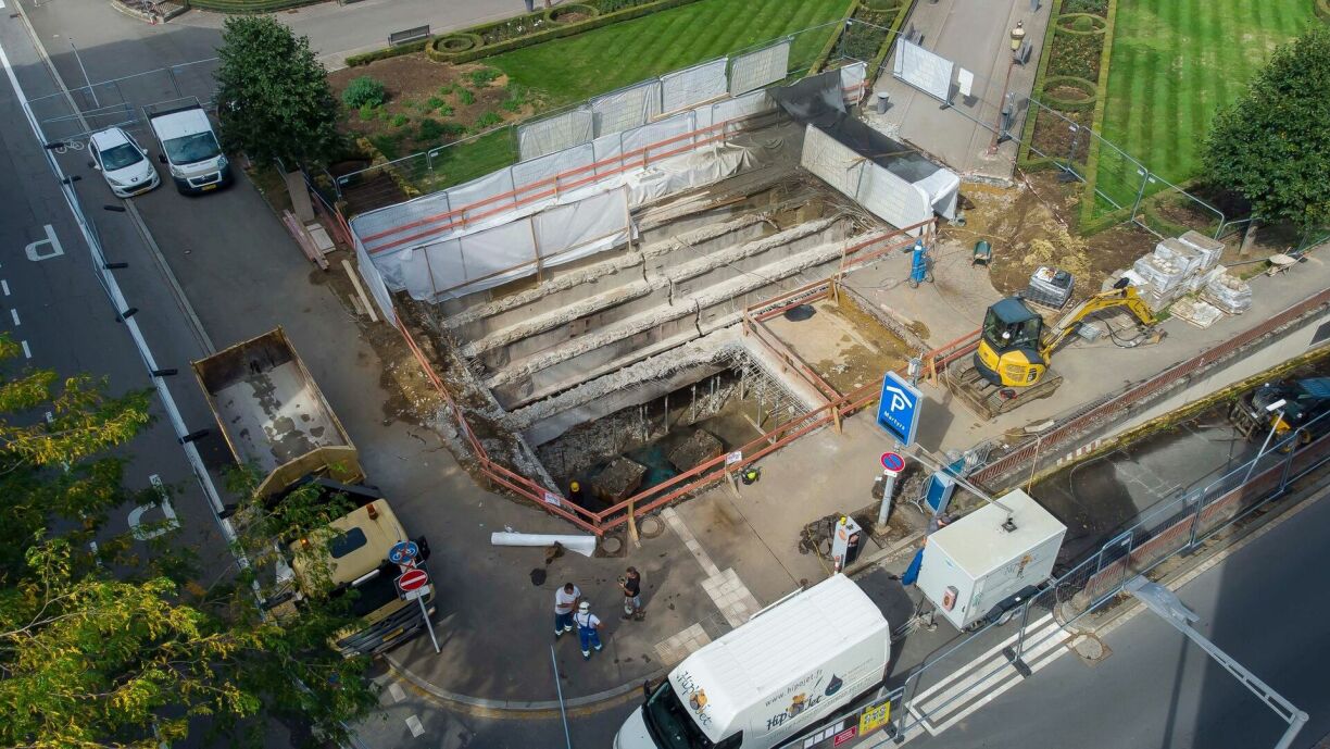 Things have finally been moving at Rousegaertchen for the past few weeks. The underground car park at Place des Martyrs closed after the fire on 9 September 2019, which caused major material damage to the ceiling of the car park.