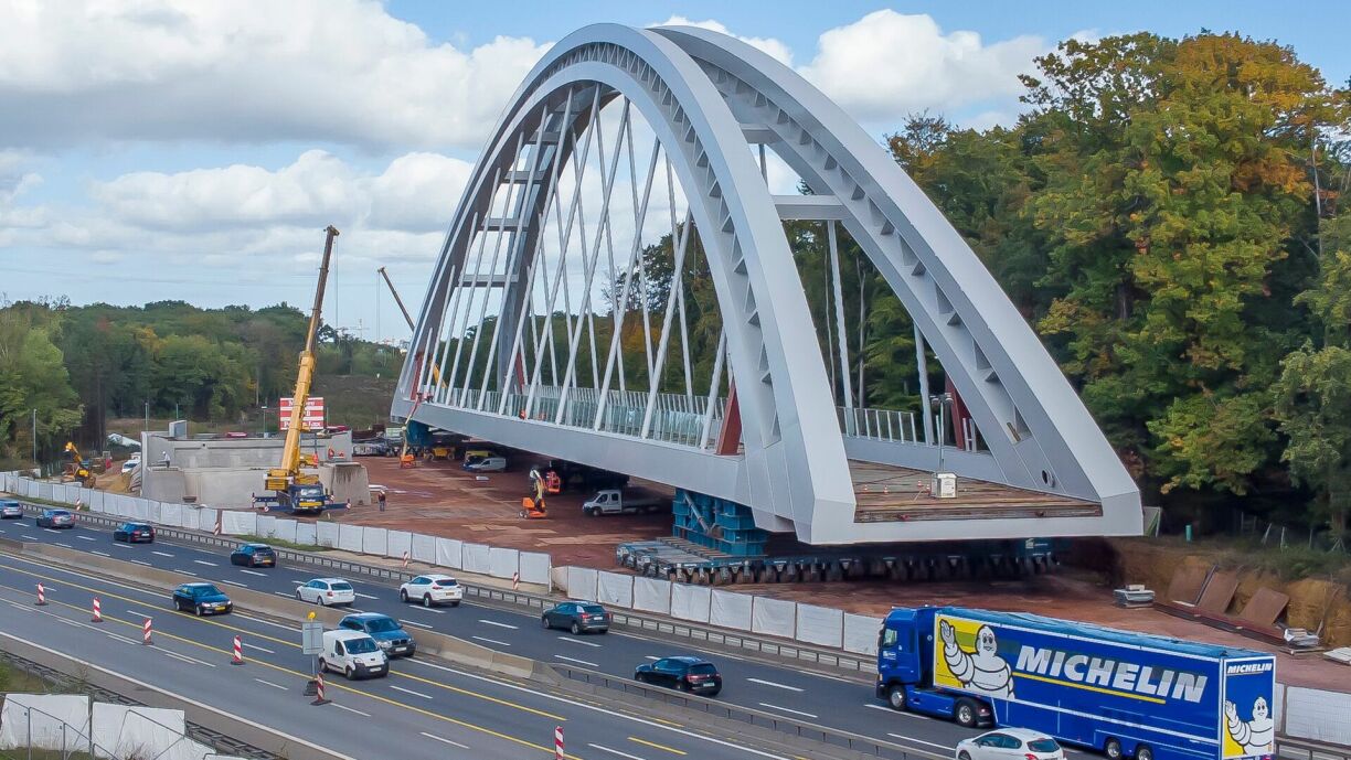 Special vehicles (KAMAG) will bring the bridge into its final position and align it with the bridge pier on the other side of the motorway. CFL expects to complete this major feat of strength over the future six-lane motorway in less than two hours. The bridge will then “sit” five metres above the road.