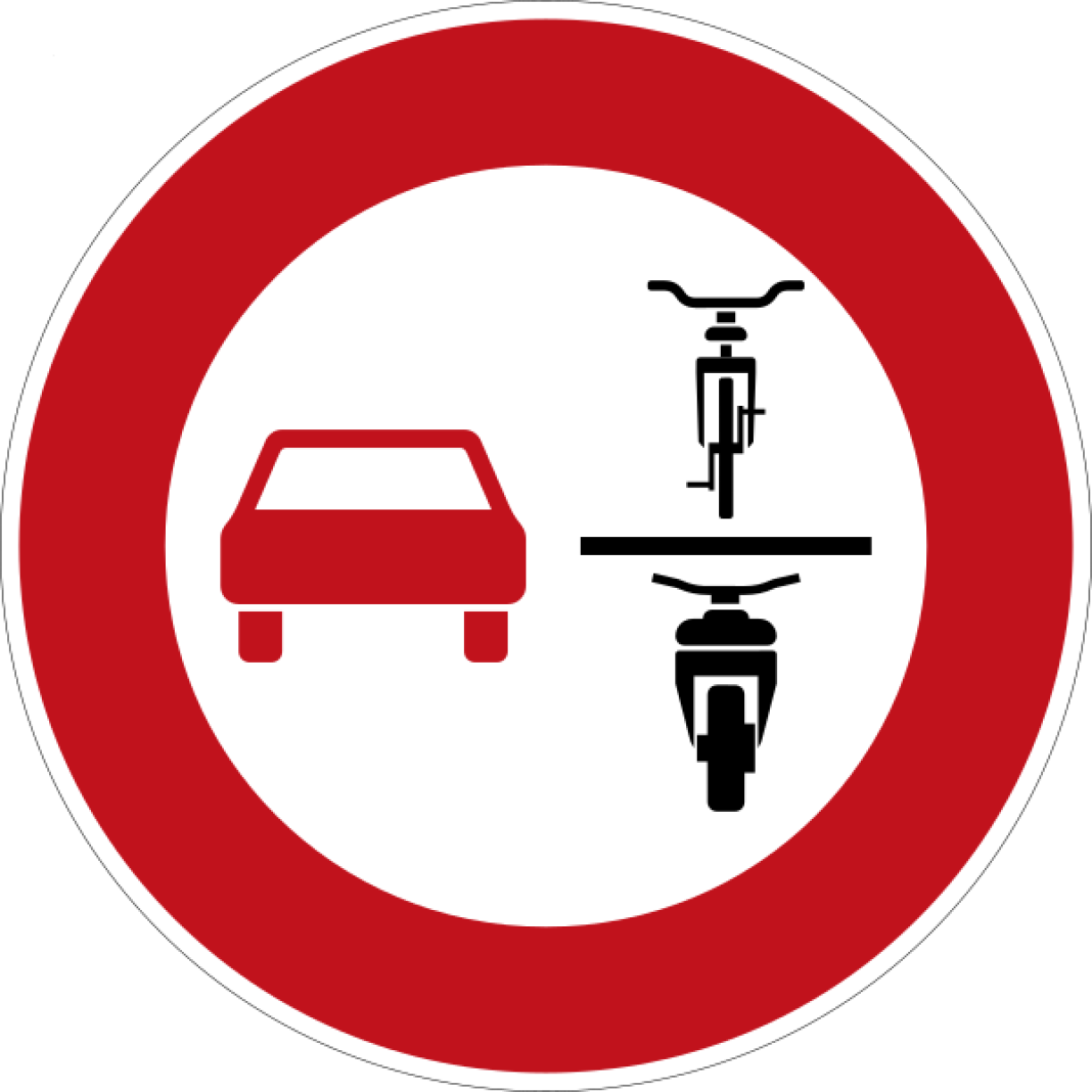 “This is a prohibition sign indicating that a car or lorry may not pass a bicycle or motorbike. So, motorbikes with sidecars can’t overtake a motorbike or a bicycle either.”