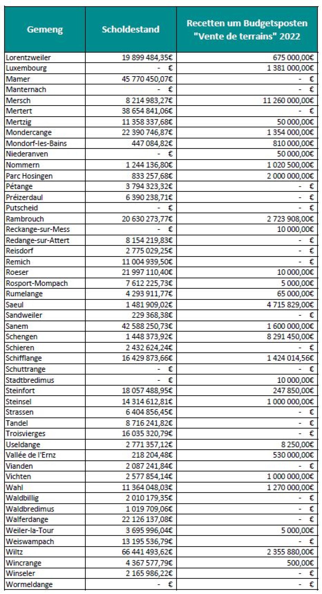 In her response to a parlimentary question, Minister of the Interior Taina Bofferding provided the figures of indebted municipalities to the Pirates MP Marc Goergen.
